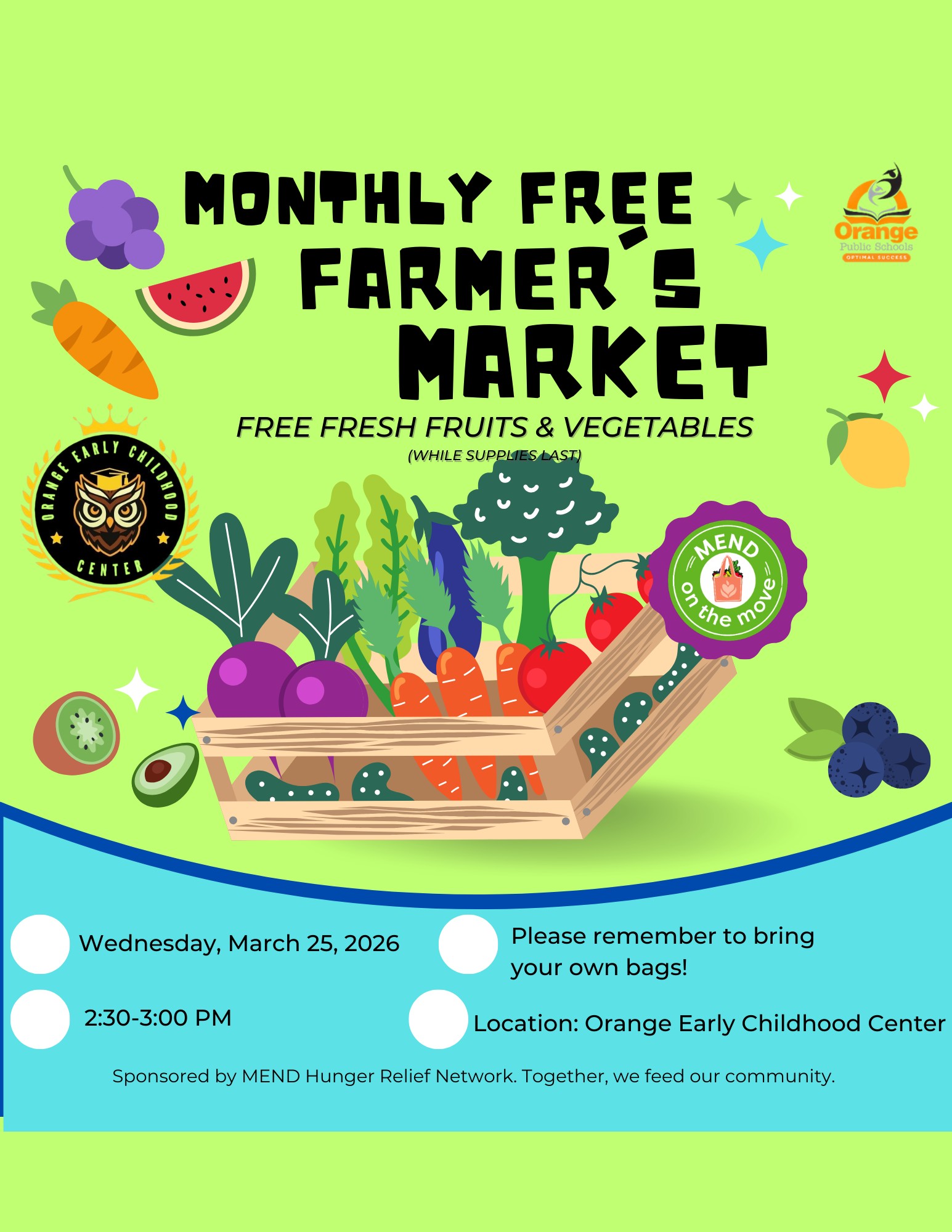 Come shop for FREE fruits & vegetables this Wednesday, March 25 after school!! Bring your own bags!