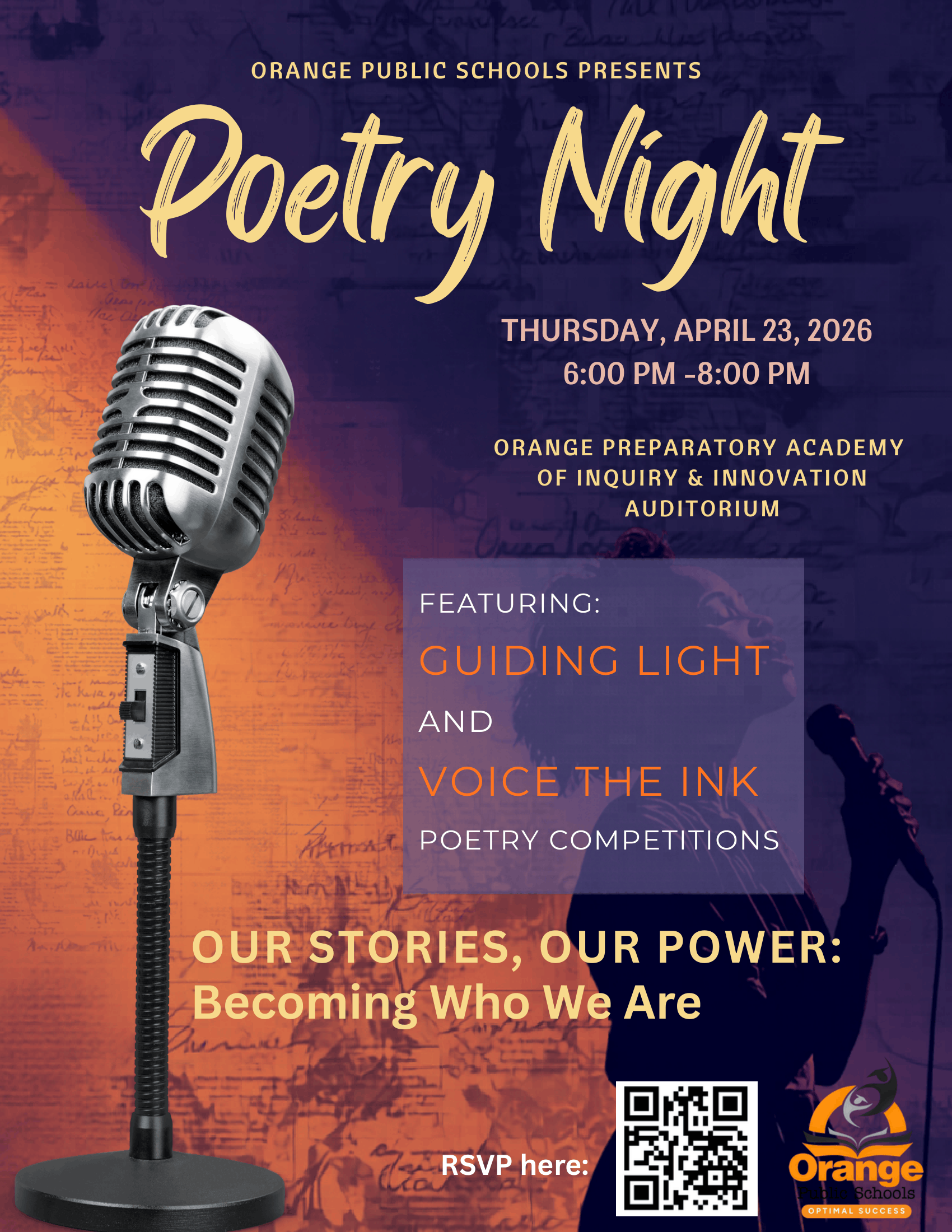 April is National Poetry Month - and Orange Public Schools is celebrating in the BEST way. Come out this Thursday, April 23rd | 6:00–8:00 PM for an unforgettable Poetry Night at the OPA I&...